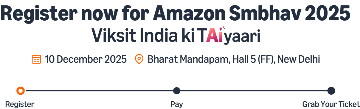 When and where is Amazon Smbhav 2025?Amazon Smbhav 2025 will be held on December 10, 2025, at Bharat Mandapam, Hall No. 5, First Floor, New
